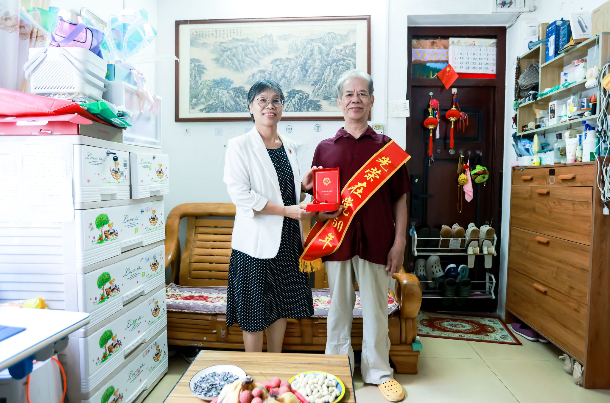 学校领导一行看望慰问了离休老干部代表薛碧芳、“光荣在党50年”党员代表李佳秋、任北上、韦春尧、杨思红、陆维杰、苏绍云,以及生活困难党员代表李福洲、梁冠超、郑卫华,为他们送上慰问金,颁发“光荣在党50年”纪念章。学校领导与离退休老同志亲切交谈,关心询问他们的身体状况、生活需求,感谢他们长期以来为党的教育事业和学校建设发展所作出的贡献,希望老党员们在保重身体、安享晚年的同时,一如既往地关心支持学校各项工作,继续为学校高质量发展积极建言献策。